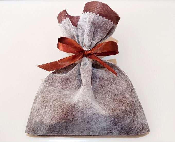 商品を箱にお入れして、ラッピング袋をお付けいたします。